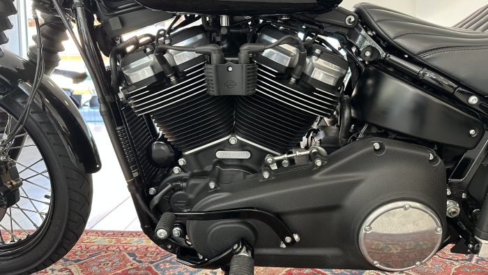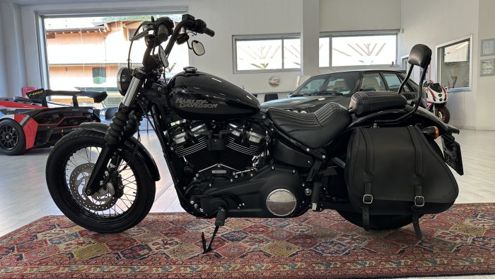 Harlet Davidson Street Bob 107 con colorazione Vivid Black in ottime condizioni e già accessoriato per poter viaggiare anche in due.